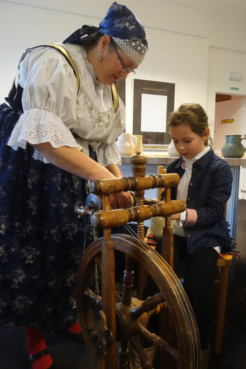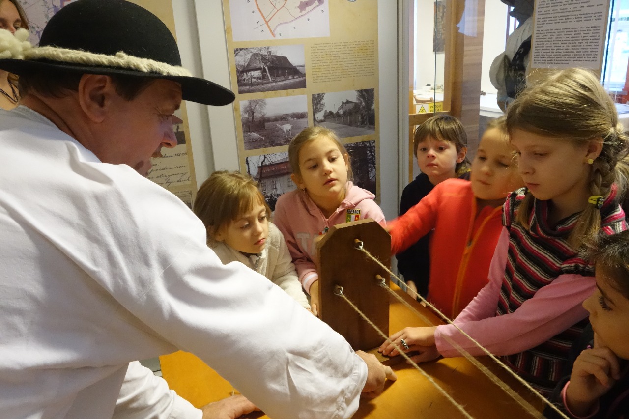 Jak si krátili čekání na vánoční svátky naše praprababičky a prapradědečkové, když ještě byli malí jsme si vlastnoručně vyzkoušeli v muzejní síni Havířov. Naučili jsme se uplést provázky i provazy, připravit vlnu k předení. Vyzkoušeli jsme si předení na kolovrátku i tkaní papučí. Aby nám šla práce lépe od ruky, hrála nám lidová muzika z Jablunkova.